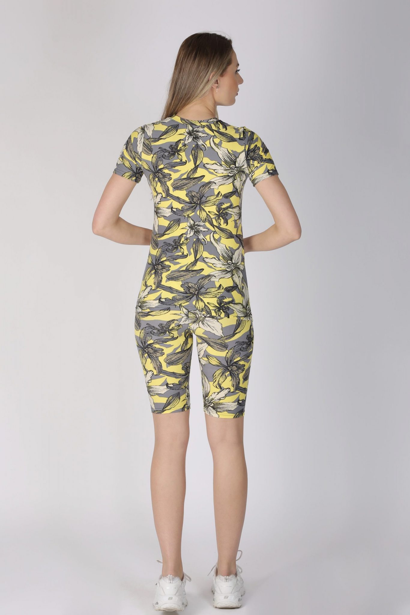 Die Shorts und das T-Shirt sind aus einem elastischen und atmungsaktiven Material gefertigt, das sich angenehm auf der Haut anfühlt und eine schlanke Silhouette formt.