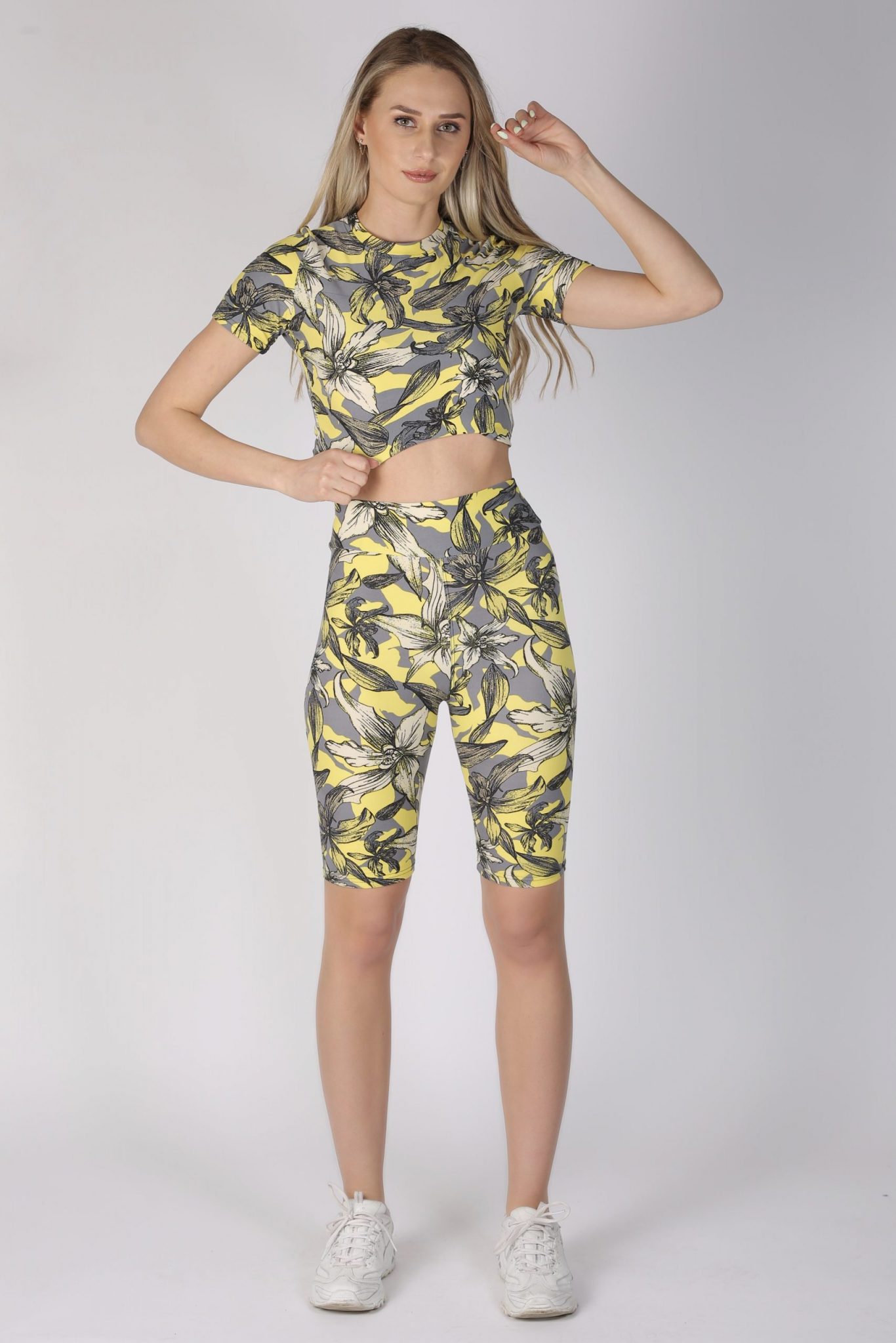 Super Soft Butterweich Stretch Sets mit Ultimative gelbe Blumen muster-Hoch Bund-Elastischer Bund